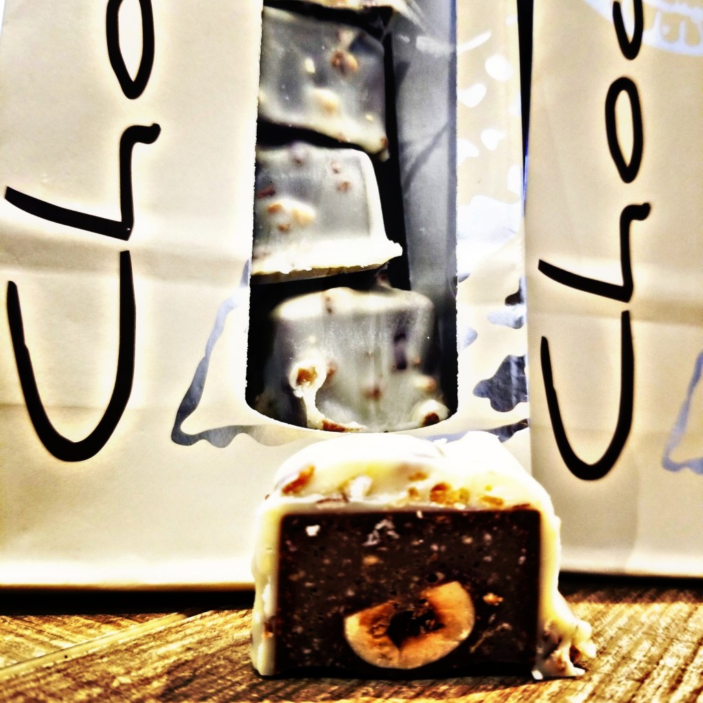 Ingrédients : praliné maison (amande, noisette, sucre), chocolat blanc / noir / lait ( pâte de cacao, sucre, beurre de cacao, poudre lait écrémé, matière grasse laitière, émulsifiant : lécithine de soja, arôme naturel de vanille) , huile de tournesol, pralin.
